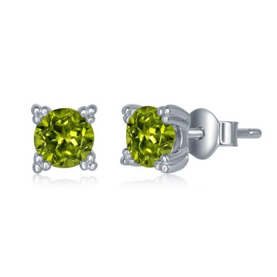 Simona Sterling Silver 5MM Round Four Prong Stud Earrings - Peridot - Green