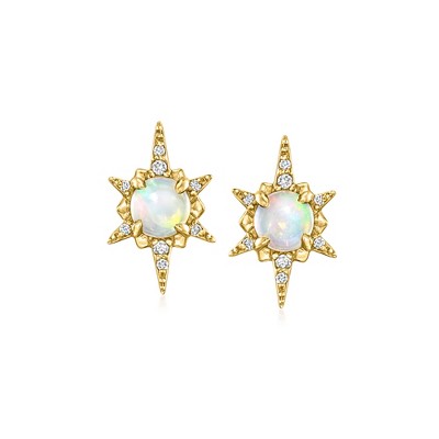 Pure Collection by Ross-Simons Opal Starburst Earrings With Diamonds in 14kt Yellow Gold