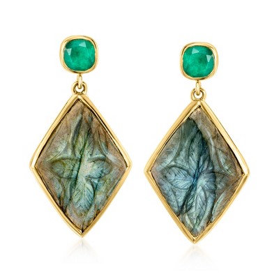 Ross-Simons Labradorite and 1.30 ct. t.w. Emerald Drop Earrings in 18kt Gold Over Sterling