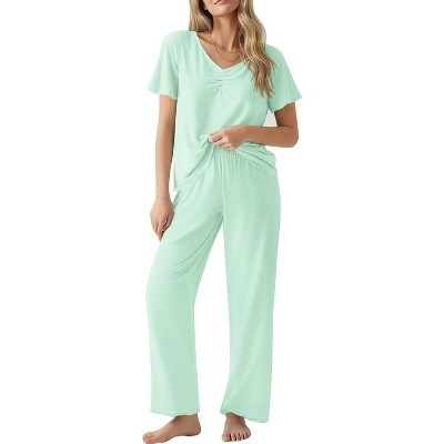 Avidlove Women Pajamas Set Notch Collar Soft Sleepwear Pjs Short Sleeve Button Down Nightwear with Long Pants