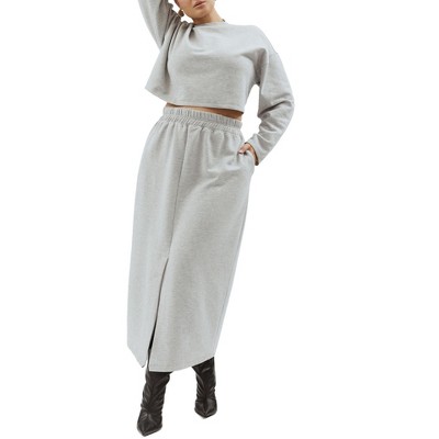 INSPIRE CHIC Women's High Waisted Solid Stretch Comfy Stylish Flowy Flare Casual Maxi Skirts