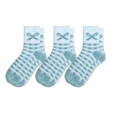 Anna-Kaci 3-Pair Fuzzy Bow Knit Crew Socks Set with Plush Soft Texture, Stretchy Cozy Fabric, and Graphic Bow Pattern for Gifting