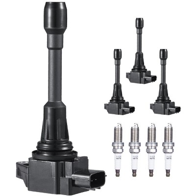 VEVOR Ignition Coil Pack and Spark Plugs, Set of 4, Compatible with Nissan Altima Versa Sentra Cube Rogue NV200 2.5L 2.0L 1.8L 1.6L L4, Black