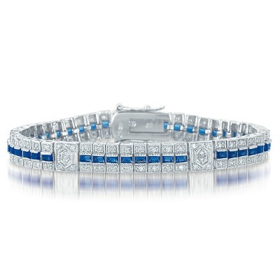 Guili Sterling Silver Clear and Blue Cubic Zirconia Stripe Bracelet, Modern Stylish Jewelry Perfect for Everyday Glamour and Unique Charm