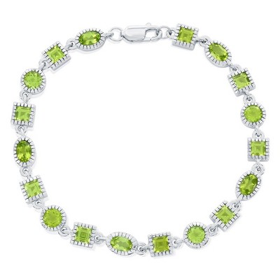 Simona Sterling Silver Oval & Square Gem Bracelet - Peridot - Green - 7.5 Inch