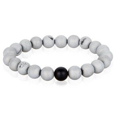 Crucible Men's Skull with Matte Onyx Stone Beads Stretch Bracelet (8mm)