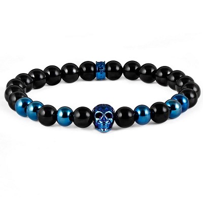Crucible Men's Skull with Lava and Matte Onyx Stone Beads Stretch Bracelet