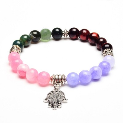 ELYA Women's Hamsa Charm Natural Stone Bead Stretch Bracelet (8mm Wide)