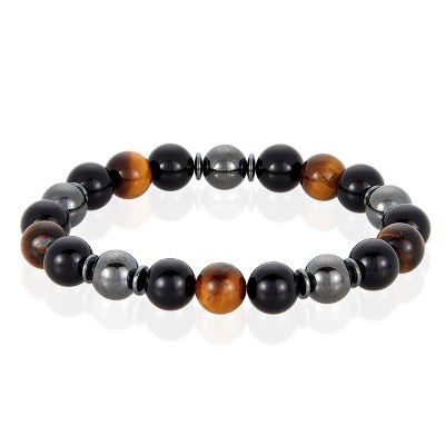 Crucible Men's Tiger Eye Stone with Onyx and Hematite Bead Stretch Bracelet (10mm)