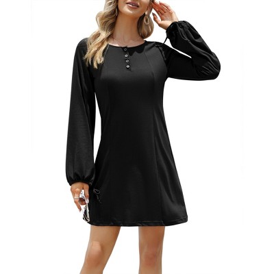 Clearlove Womens Henley Mini Dress Drawstring Long Lantern Sleeve Button Down Crew Neck Casual A Line Dress