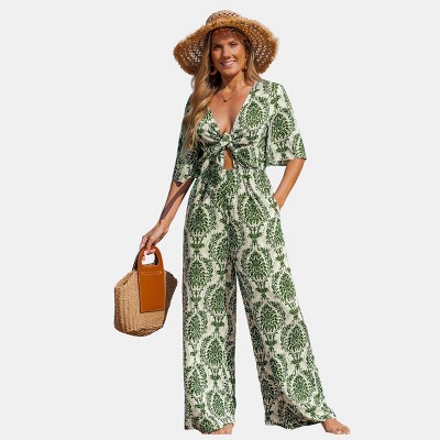 Women's Breezy Beach Botanical Jumpsuit - Cupshe-M-Green