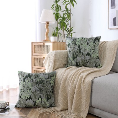 Kate Aurora 1 Piece Jacobean Floral Chenille Ultra Plush & Fluffy 18"x 18" Filled Accent Throw Pillow With Removable Shell/Cover