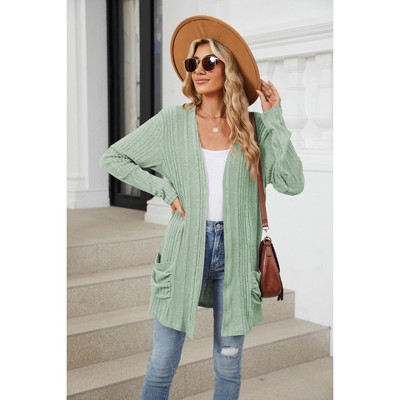 Women's Ribbed Knit Cardigan - Long Sleeve Open Front Pocket Sweater