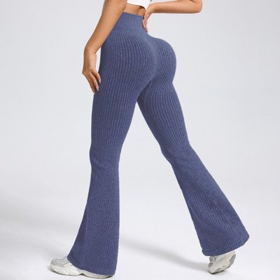 Anna-Kaci Active Women's Ribbed Knit Flare Pants with Wrap Tie Waistband and High Waist Silhouette