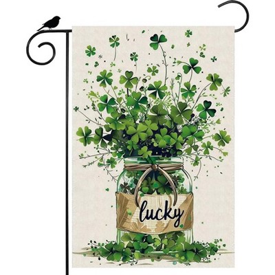 St Patricks Day Garden Flag Lucky Shamrock Floral 12x18 Inch Single Sided Green