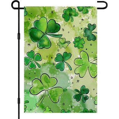 Lomsoe St Patricks Day Garden Flag Watercolor Green Shamrock Clover Yard Flag Welcome Garden Sign St Patricks Day Gift Decor Single Side 12x18Inch