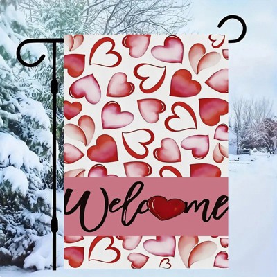 Love Hearts House Flags Single Sided, Welcome Large Garden Flag for Outside Decor, Holiday Yard Flag Outdoor Seasonal Decorations for Home 12x18in