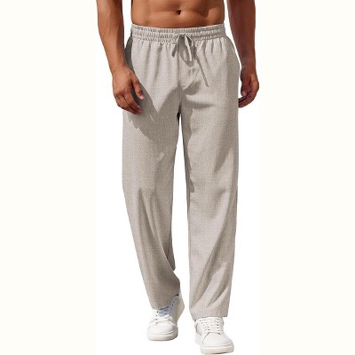 COOFANDY Mens Casual Pants Drawstring Elastic Waist Pants Linen Summer Beach Pants