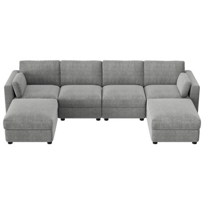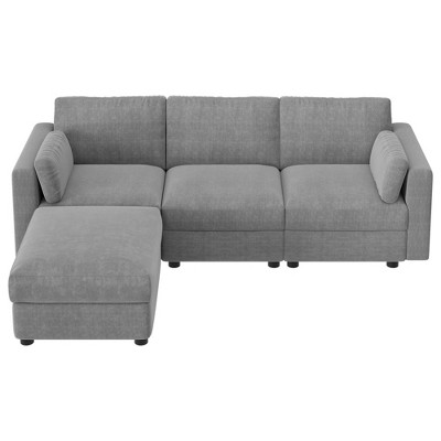 grey couch with silver studs