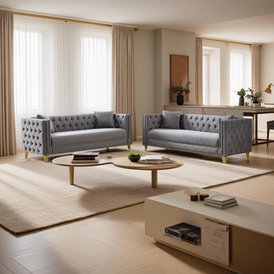 - grey chesterfield leather sofa