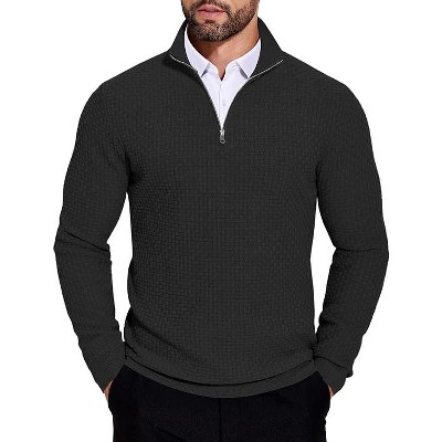 COOFANDY Men's Quarter Zip Sweaters Slim Fit Lightweight Knitted Mock Neck Pullover Casual Polo Sweaters