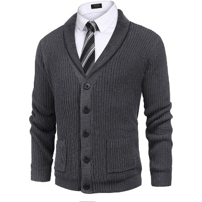 COOFANDY Men's Shawl Collar Pullover Sweater Slim Fit Casual Button Cable Knit Sweaters