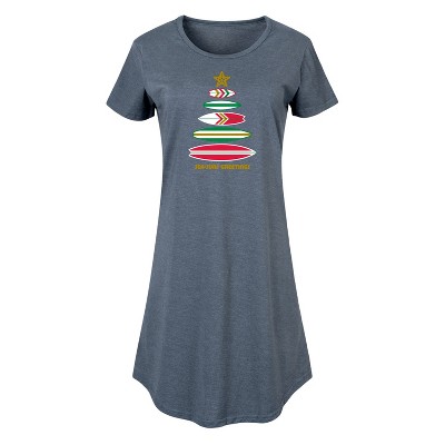 Women's - Instant Message - Sea Suns Geetings Surfboard Tree Christmas Graphic T-shirt Dress