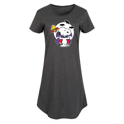 Women's Peanuts Snoopy Woodstock Vampire Graphic T-shirt Dress - Heather Charcoal - Small