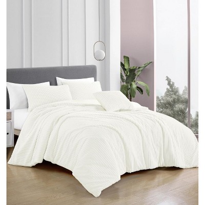 Home Mart Goods 4 Piece White Solid Striped Faux Fur Soft Plush Comforter Set