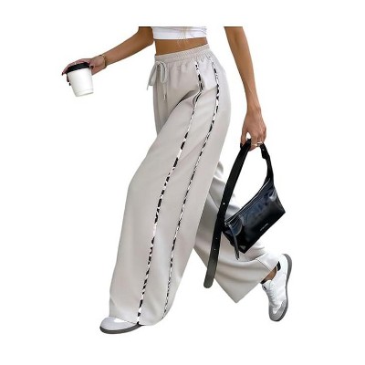 Coolmee Women's Wide Leg Sweatpants High Waisted Baggy Sweat Pants Active Striped Track Pants with Pockets