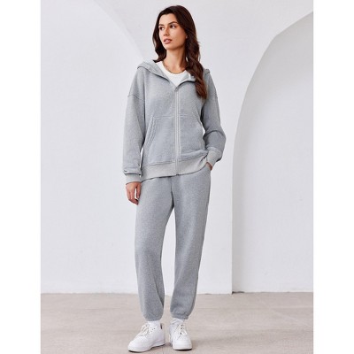 Pinspark 2 Piece Sets for Women Zip Up Hoodie Sweatshirts Drawstring Fleece Sweatpants Winter Matching Sets Fall