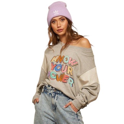 Slickblue Women's Relaxed Fit French Terry Sweatshirt - "Know Your Power" Print, Heather Grey, Size S-L