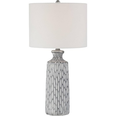 Uttermost Delgado Light Gray Table Lamp with Patterned Ceramic Base & Drum Shade, 27"H