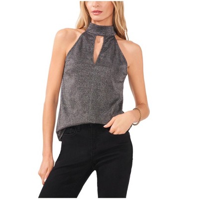 1.STATE Womens Metallic Halter Top Shirt, gray, XX-Small
