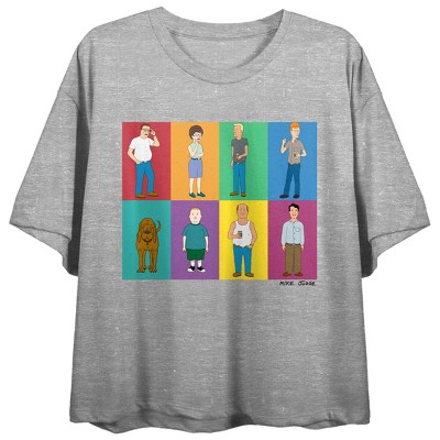 King Of The Hill Characters In Colored Boxes Crew Neck Short Sleeve Gray Heather Women's Crop Top