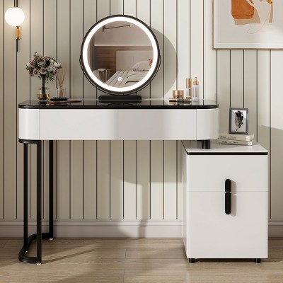grey vanity with marble top