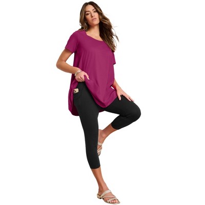 Roaman's Side-Pocket Essential Capri Legging