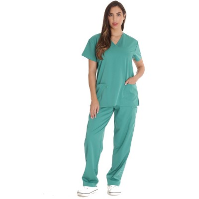 Just Love Solid Stretch Scrub Set for Women Stretchy Mock Wrap Top and Cargo Pants