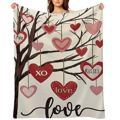 Valentine's Day Fleece Blanket Ultra Soft Anti-Pilling Heart Tree Love XO Print for Couch Bed Camping 50x60 inches