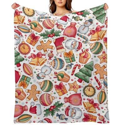 FIONECA Christmas Multi Festive Elements Gingerbread Bell Gift Snowman Tree Soft Cozy Throw Blanket Holiday Decor 30x40 inches
