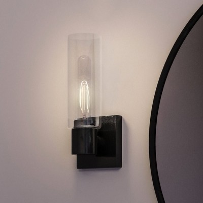 Toltec Lighting Capri 1 - Light Sconce in Matte Black with 4.5" Square Clear Bubble Shade