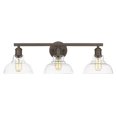 Robert Stevenson Lighting Izzy Metal and Clear Ribbed Glass 3-Light Vanity Light Brushed Gold: ETL Listed, Steel Body, No Switch