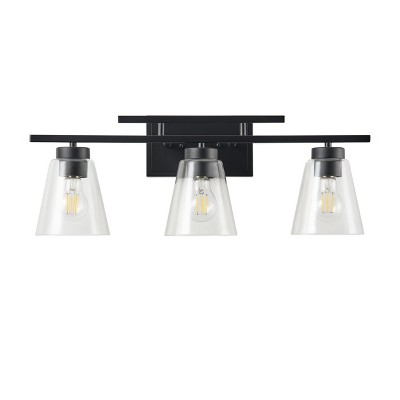 Dewdrop Industrial Mirror Light, 2-Light Matte Black Metal Frame with Clear Glass Shades, 21.06in Reversible, ETL Certified Vanity Wall Lighting