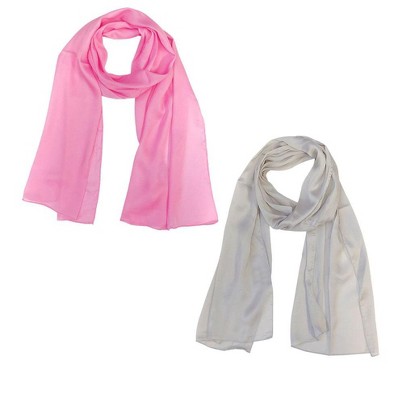Wrapables Lightweight Silky Satin Solid Colored Scarf (Set of 2), Pink and Taupe