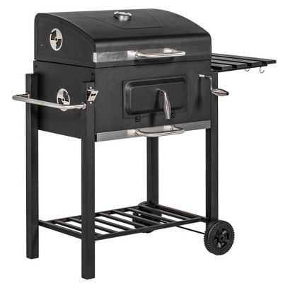 Outsunny Charcoal BBQ Grill, Outdoor Portable Cooker for Camping or Backyard Picnic with Side Table, Bottom Storage Shelf, Wheels and Handle