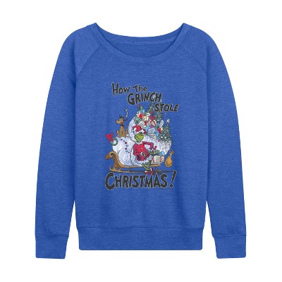 Women's - The Grinch - How The Grinch Stole Christmas Lightweight French Terry Wide Neck Long Sleeve Graphic Shirt