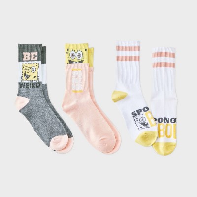 Women's Spongebob Peekaboo 3pk Crew Socks - Pink/White/Gray 4-10