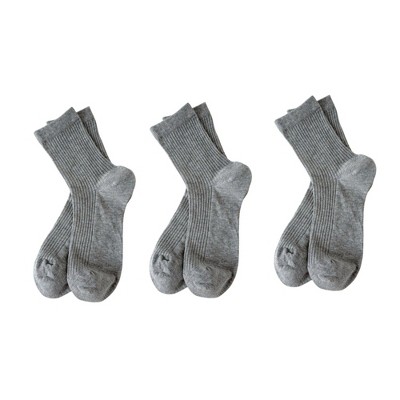 Anna-Kaci Women's 3-Pair Ribbed Crew Socks Soft Stretch Knit Classic Everyday Comfort Sock Set - Gray