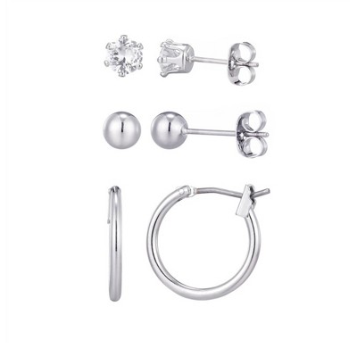 Adornia Silver Plated Hoop, Solitaire and Ball Stud Set