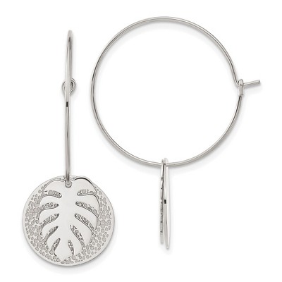 Black Bow Jewelry Stainless Steel Brushed Polished Hinged Round Hoop Earrings, 5.5x13mm